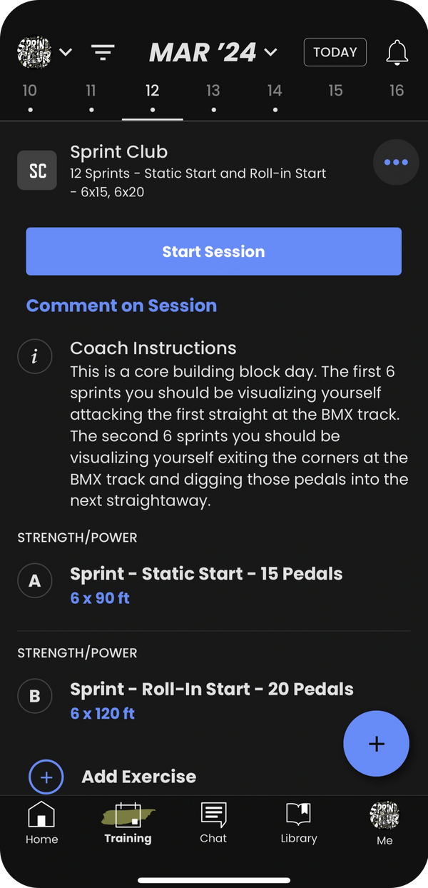 Embark on your BMX training adventure with our Sprint Club. This entry-level package delivers a solid foundation with twice-a-week sprint training programs, sent directly to your phone. Enhance your routine with a weekly supplemental exercise focusing on physical or mental conditioning. Plus, gain exclusive access to the Sprint Club's vibrant chat and community features. Sprint Club is your gateway to speed, offering the essential tools to power up your BMX riding journey!
